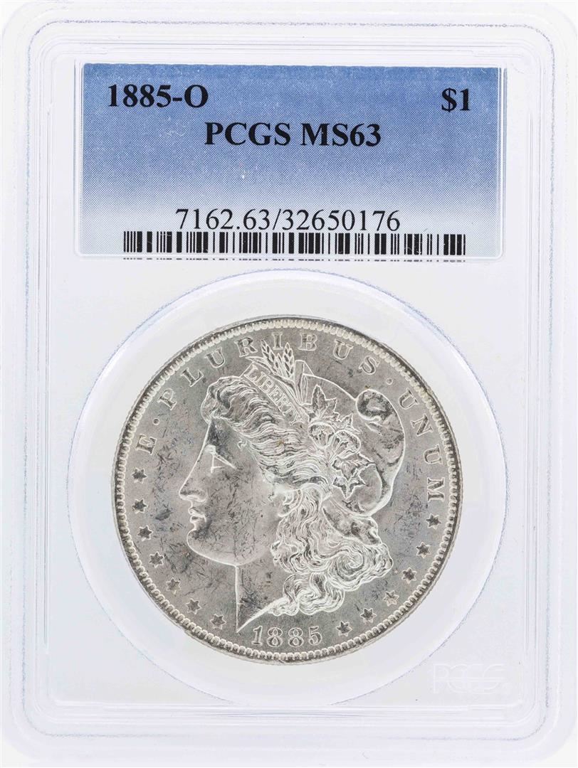 One 1885-O $1 Morgan Silver Dollar Coin PCGS MS63. PCGS Graded.