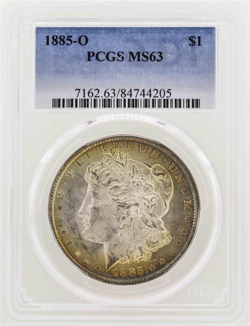 One 1885-O $1 Morgan Silver Dollar Coin PCGS MS63. PCGS Graded.