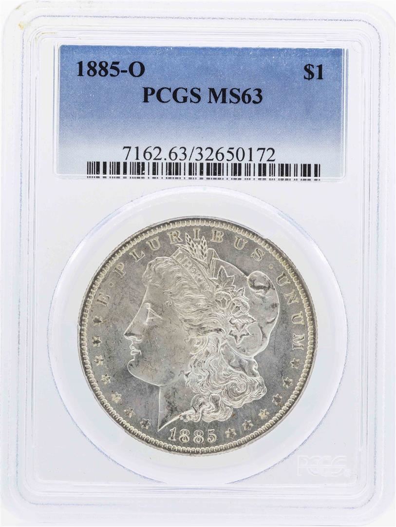 One 1885-O $1 Morgan Silver Dollar Coin PCGS MS63. PCGS Graded.