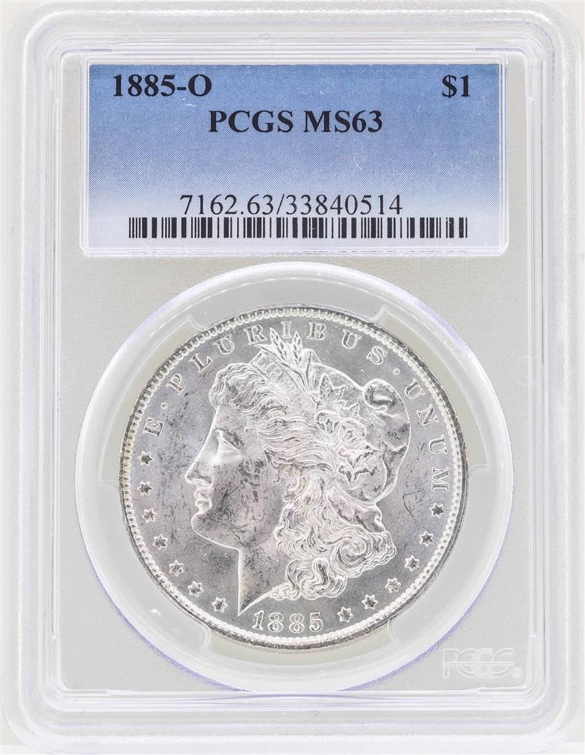 One 1885-O $1 Morgan Silver Dollar Coin PCGS MS63. PCGS Graded.
