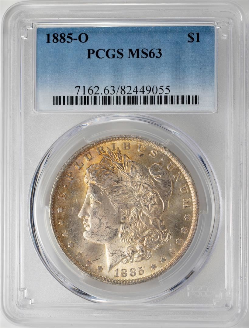 One 1885-O $1 Morgan Silver Dollar Coin PCGS MS63. PCGS Graded.