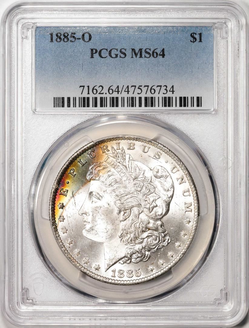 1885-O $1 Morgan Silver Dollar Coin PCGS MS64 Great Toning