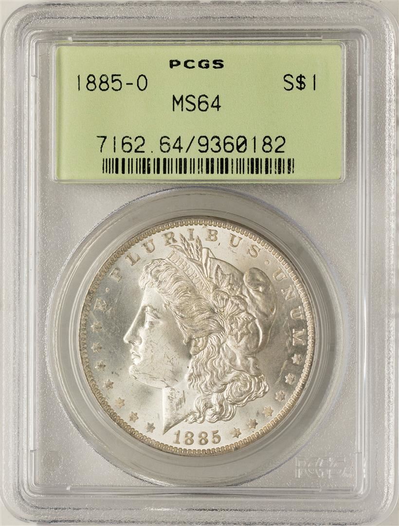 One 1885-O $1 Morgan Silver Dollar Coin PCGS MS64 Old Green Holder. PCGS Graded.