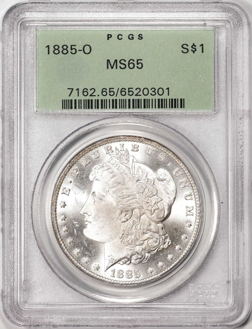 1885-O $1 Morgan Silver Dollar Coin PCGS MS65 Old Green Holder
