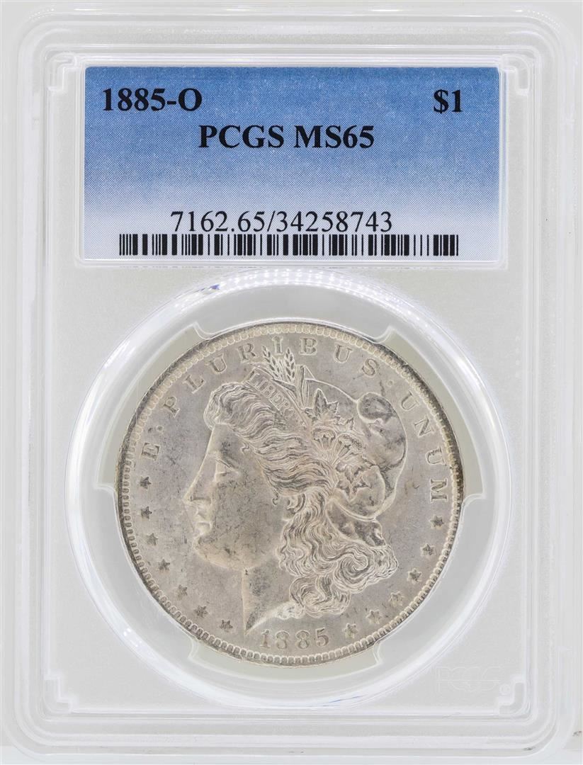 One 1885-O $1 Morgan Silver Dollar Coin PCGS MS65. PCGS Graded.