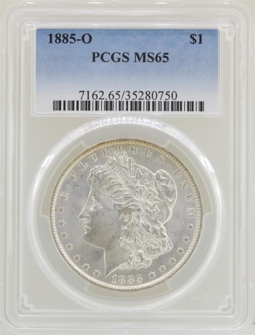 One 1885-O $1 Morgan Silver Dollar Coin PCGS MS65. PCGS Graded.