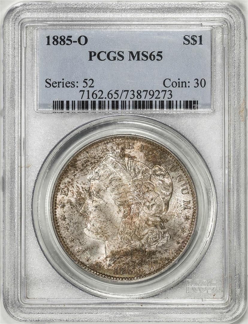 One 1885-O $1 Morgan Silver Dollar Coin PCGS MS65. PCGS Graded.