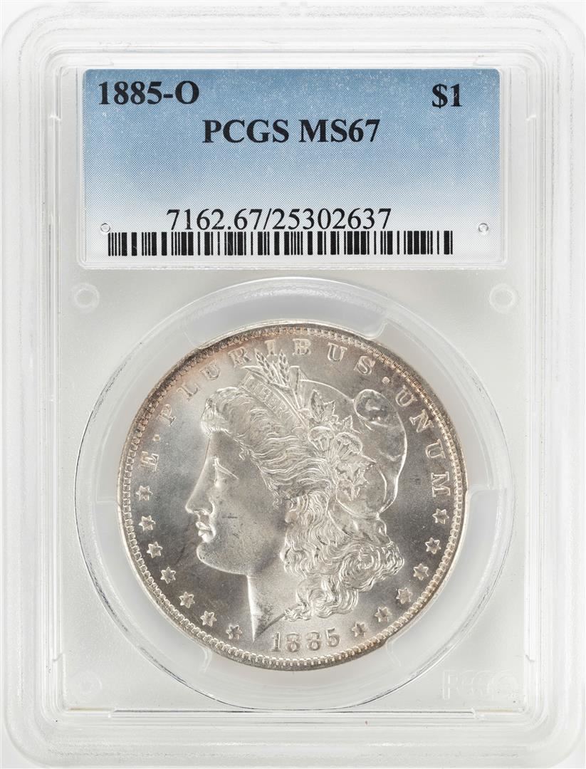 One 1885-O $1 Morgan Silver Dollar Coin PCGS MS67. PCGS Graded.