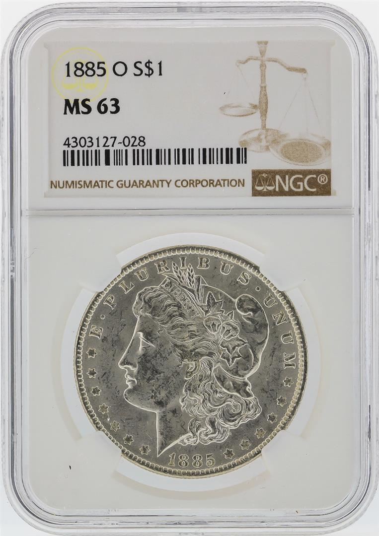 One 1885-O $1 Morgan Silver Dollar NGC Graded MS63. NGC Certified.