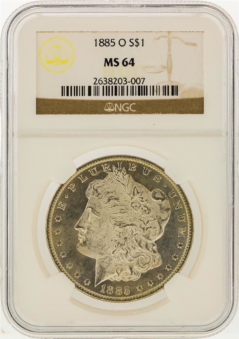 One 1885-O $1 Morgan Silver Dollar NGC Graded MS64. NGC Certified.