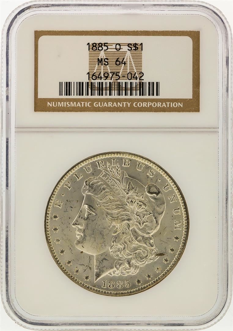 One 1885-O $1 Morgan Silver Dollar NGC Graded MS64. NGC Certified.