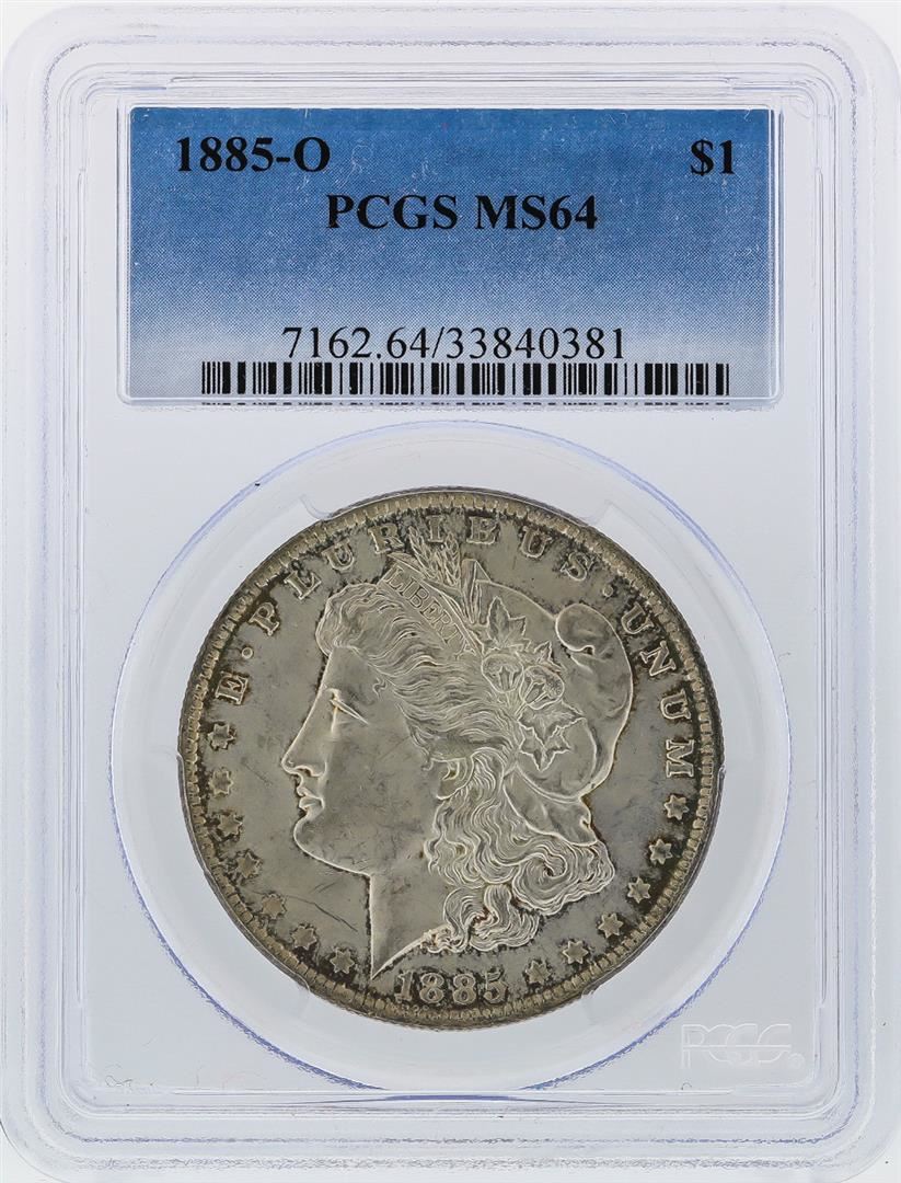 One 1885-O $1 Morgan Silver Dollar PCGS Graded MS64. PCGS Graded.