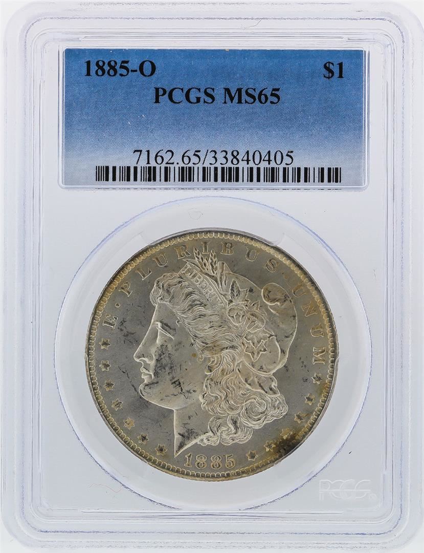 One 1885-O $1 Morgan Silver Dollar PCGS Graded MS65. PCGS Graded.