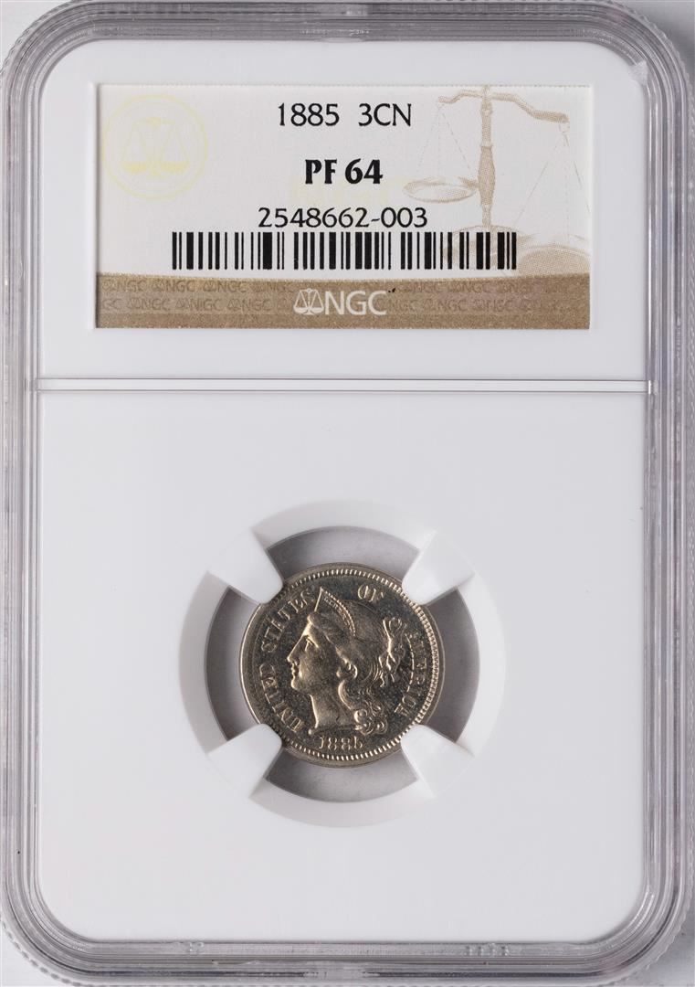 One 1885 Proof Three Cent Nickel Coin NGC PF64. NGC Certified.