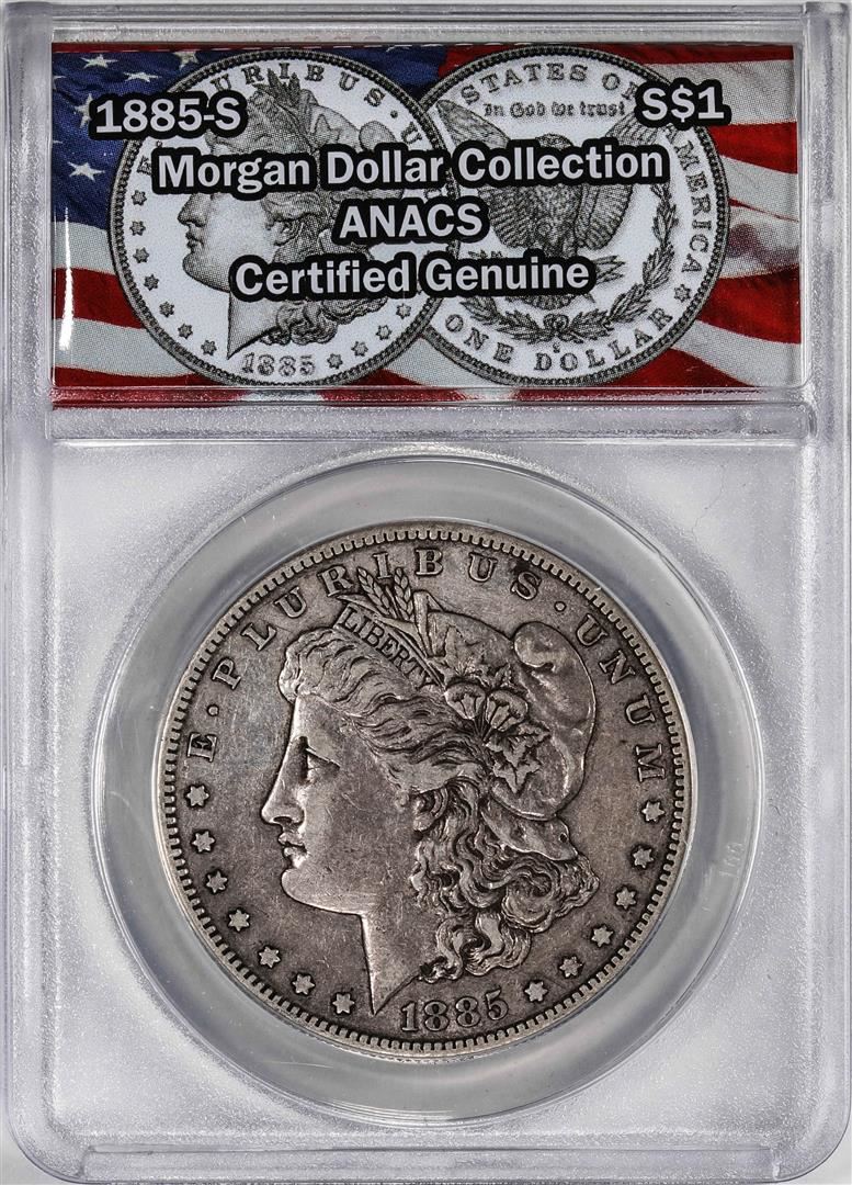 One 1885-S $1 Morgan Silver Dollar Coin ANACS Genuine. ANACS Certified.