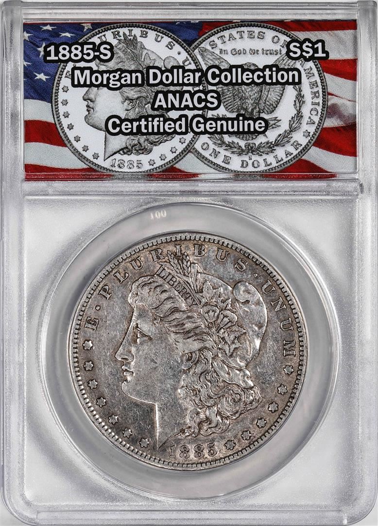 One 1885-S $1 Morgan Silver Dollar Coin ANACS Genuine. ANACS Certified.