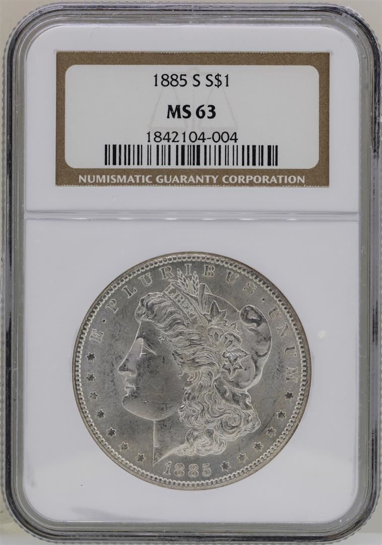 One 1885-S $1 Morgan Silver Dollar Coin NGC MS63. NGC Certified.
