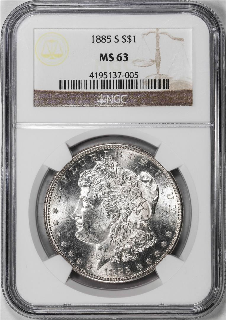 One 1885-S $1 Morgan Silver Dollar Coin NGC MS63. NGC Certified.