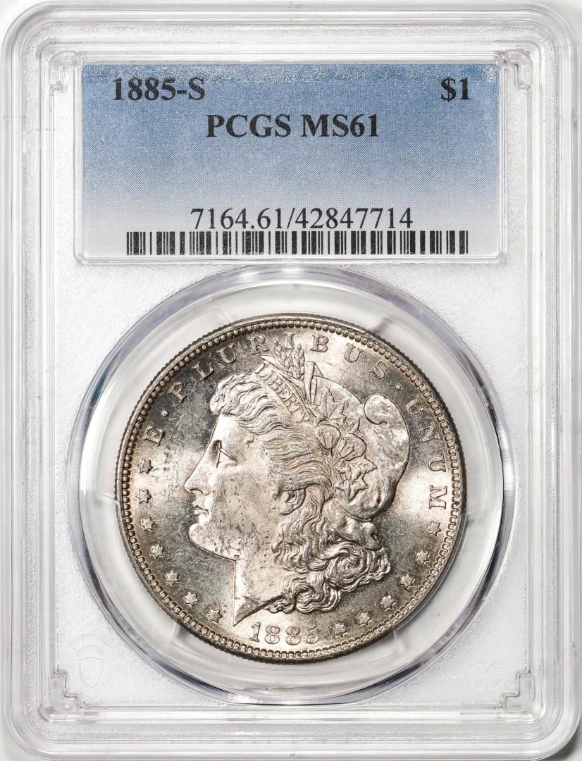 One 1885-S $1 Morgan Silver Dollar Coin PCGS MS61. PCGS Graded.