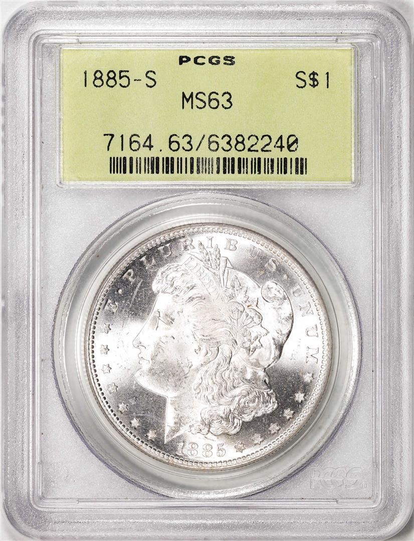 1885-S $1 Morgan Silver Dollar Coin PCGS MS63 Old Green Holder