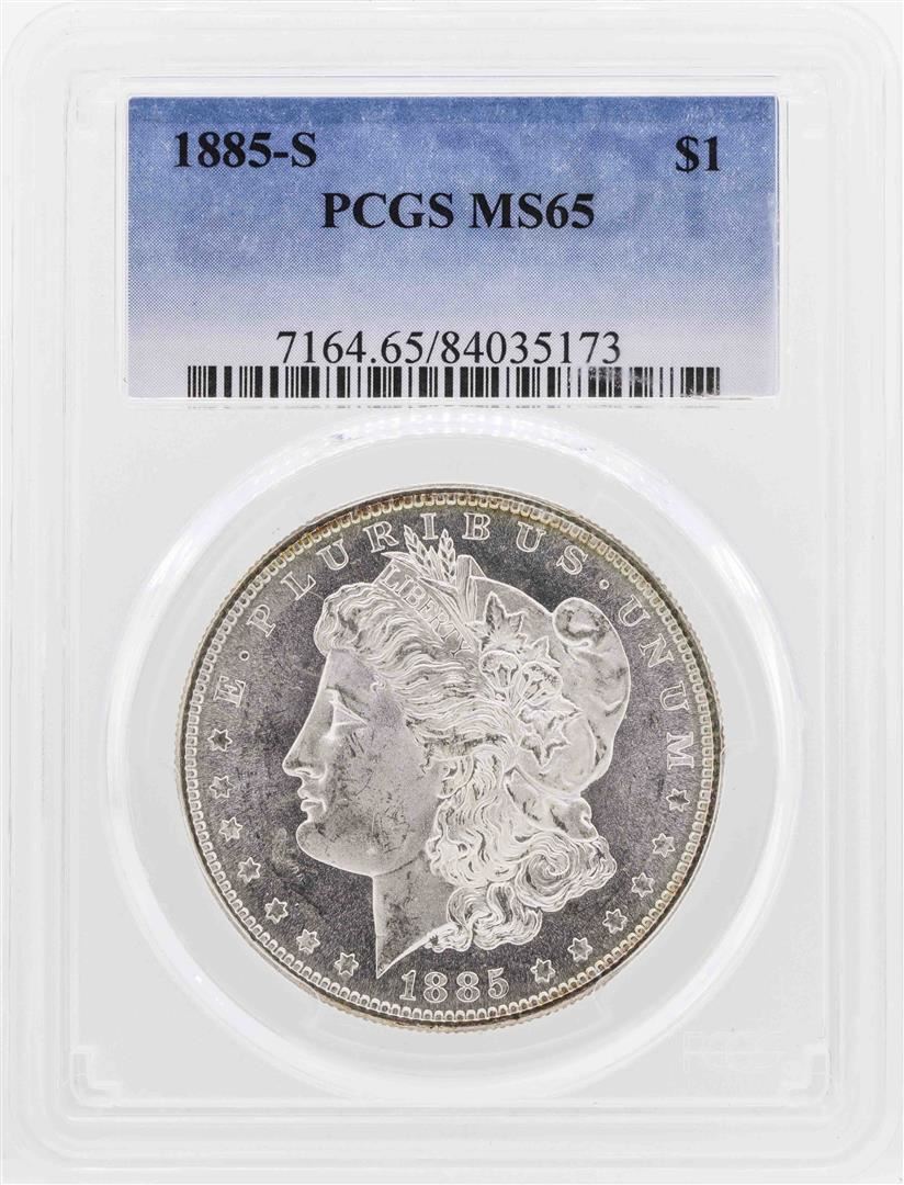 One 1885-S $1 Morgan Silver Dollar Coin PCGS MS65. PCGS Graded.