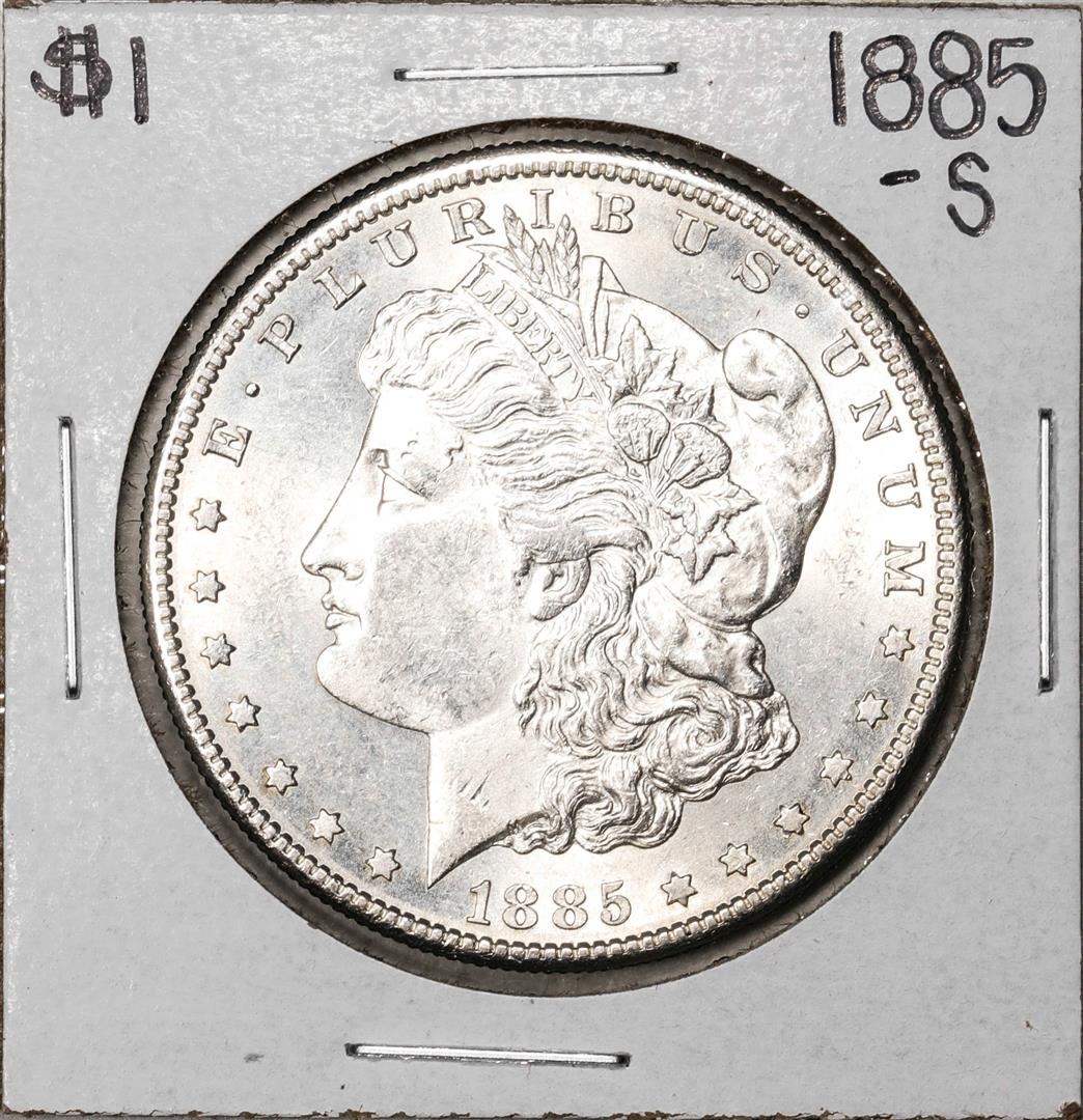 One 1885-S $1 Morgan Silver Dollar Coin.