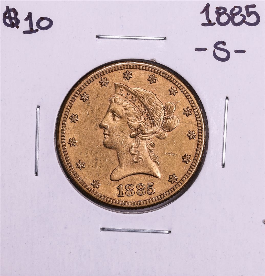One 1885-S $10 Liberty Head Eagle Gold Coin.