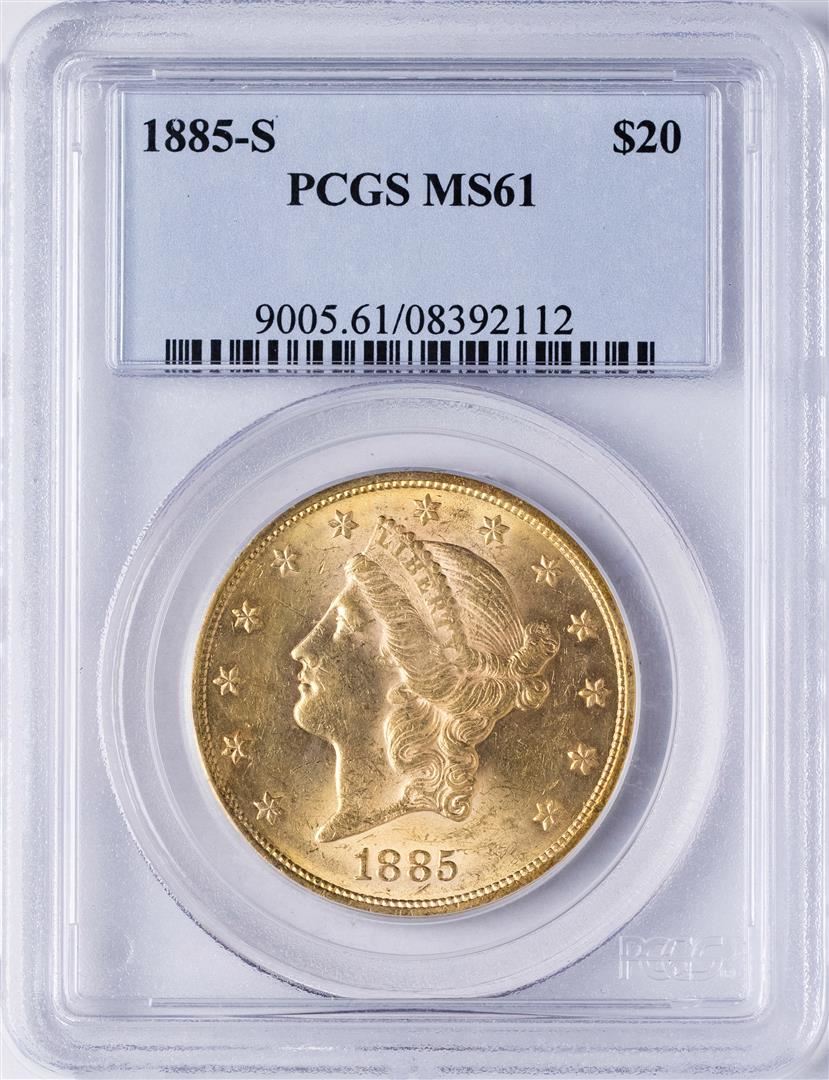 One 1885-S $20 Liberty Head Double Eagle Gold Coin PCGS MS61. PCGS Graded.