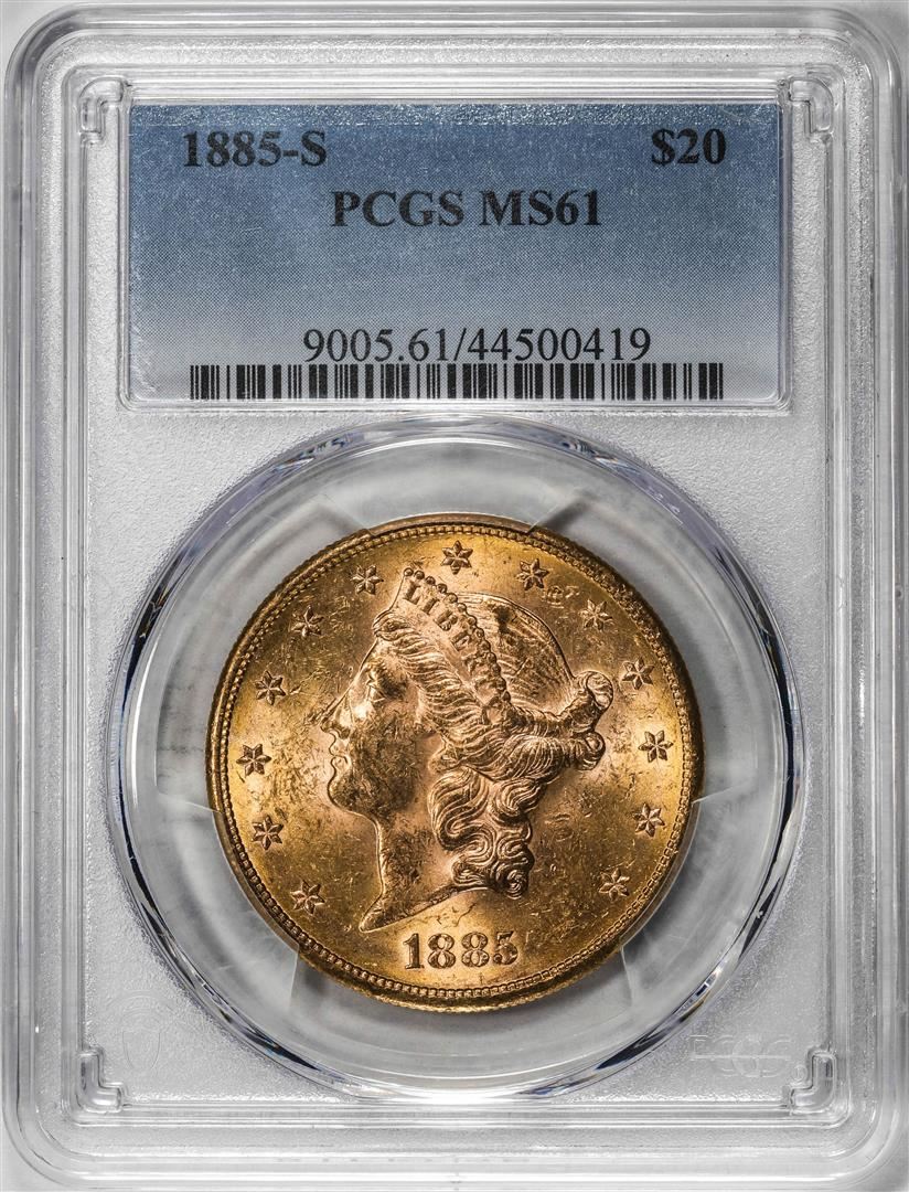 One 1885-S $20 Liberty Head Double Eagle Gold Coin PCGS MS61. PCGS Graded.