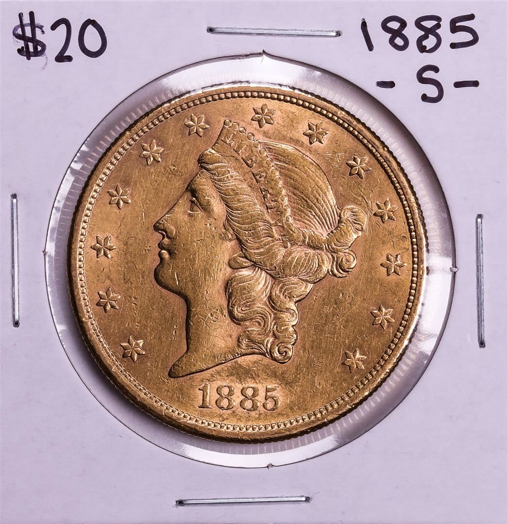 One 1885-S $20 Liberty Head Double Eagle Gold Coin.