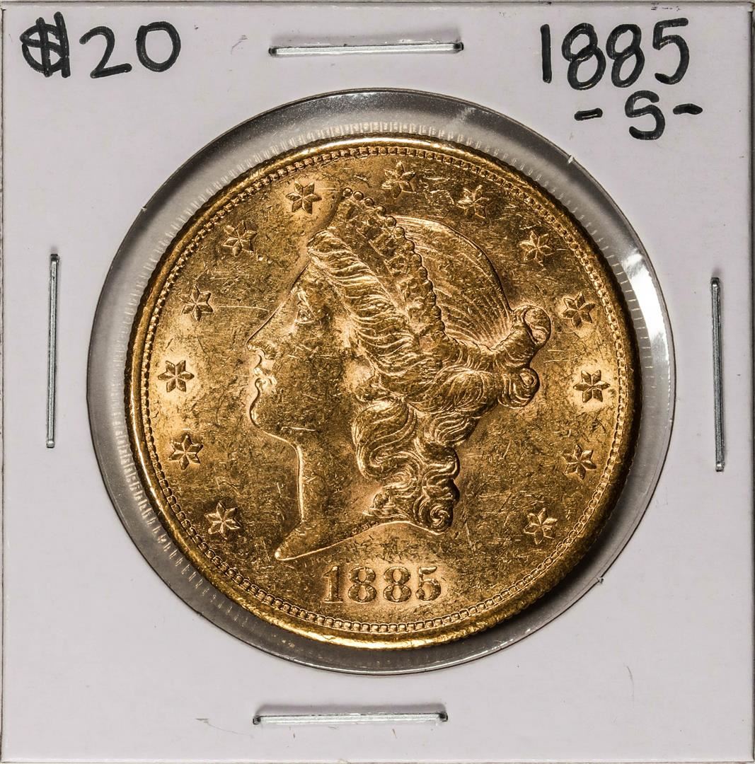 One 1885-S $20 Liberty Head Double Eagle Gold Coin.