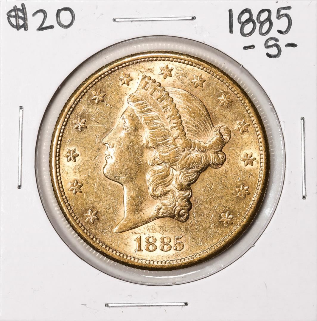 One 1885-S $20 Liberty Head Double Eagle Gold Coin.