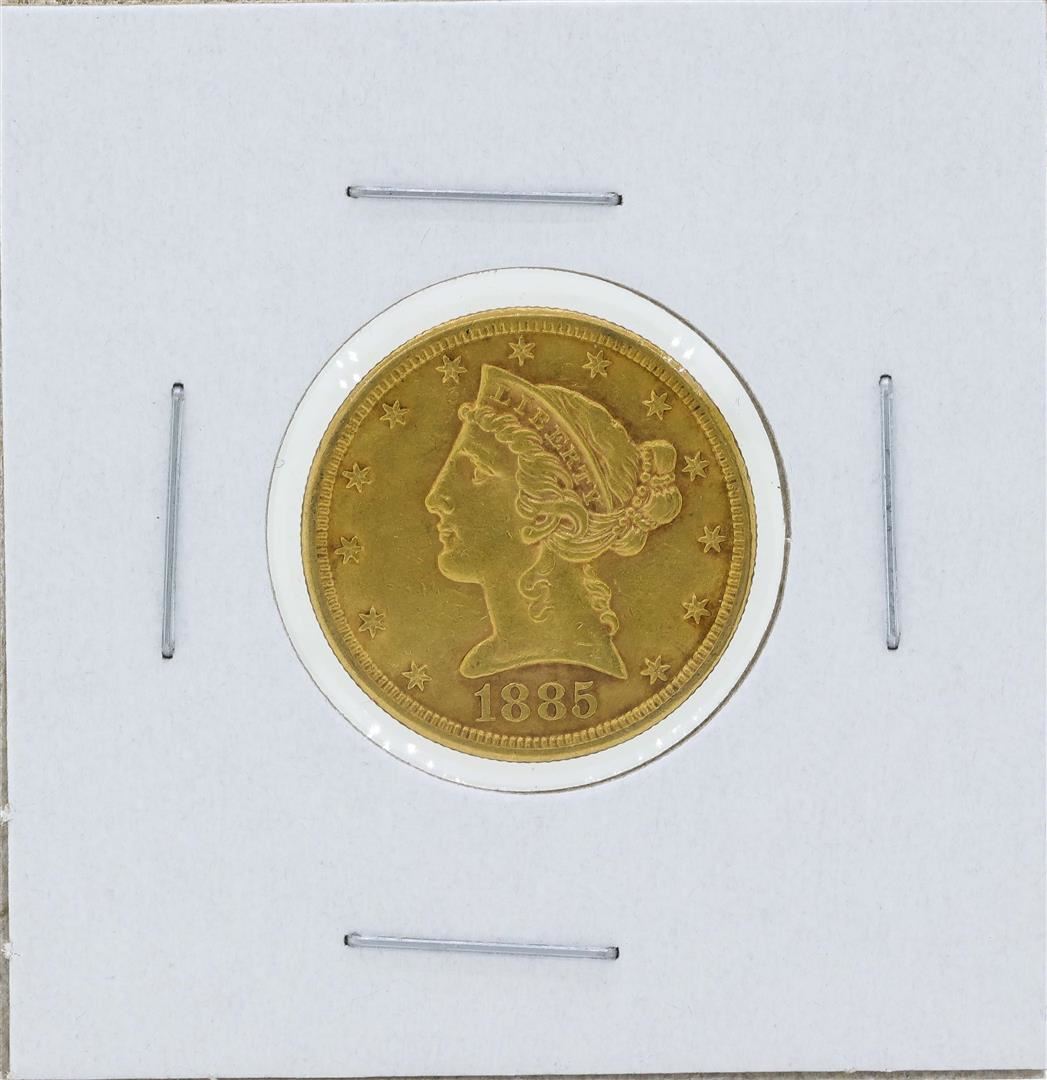 One 1885-S $5 Liberty Head Half Eagle Gold Coin.
