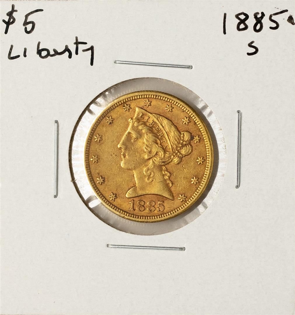 One 1885-S $5 Liberty Head Half Eagle Gold Coin.