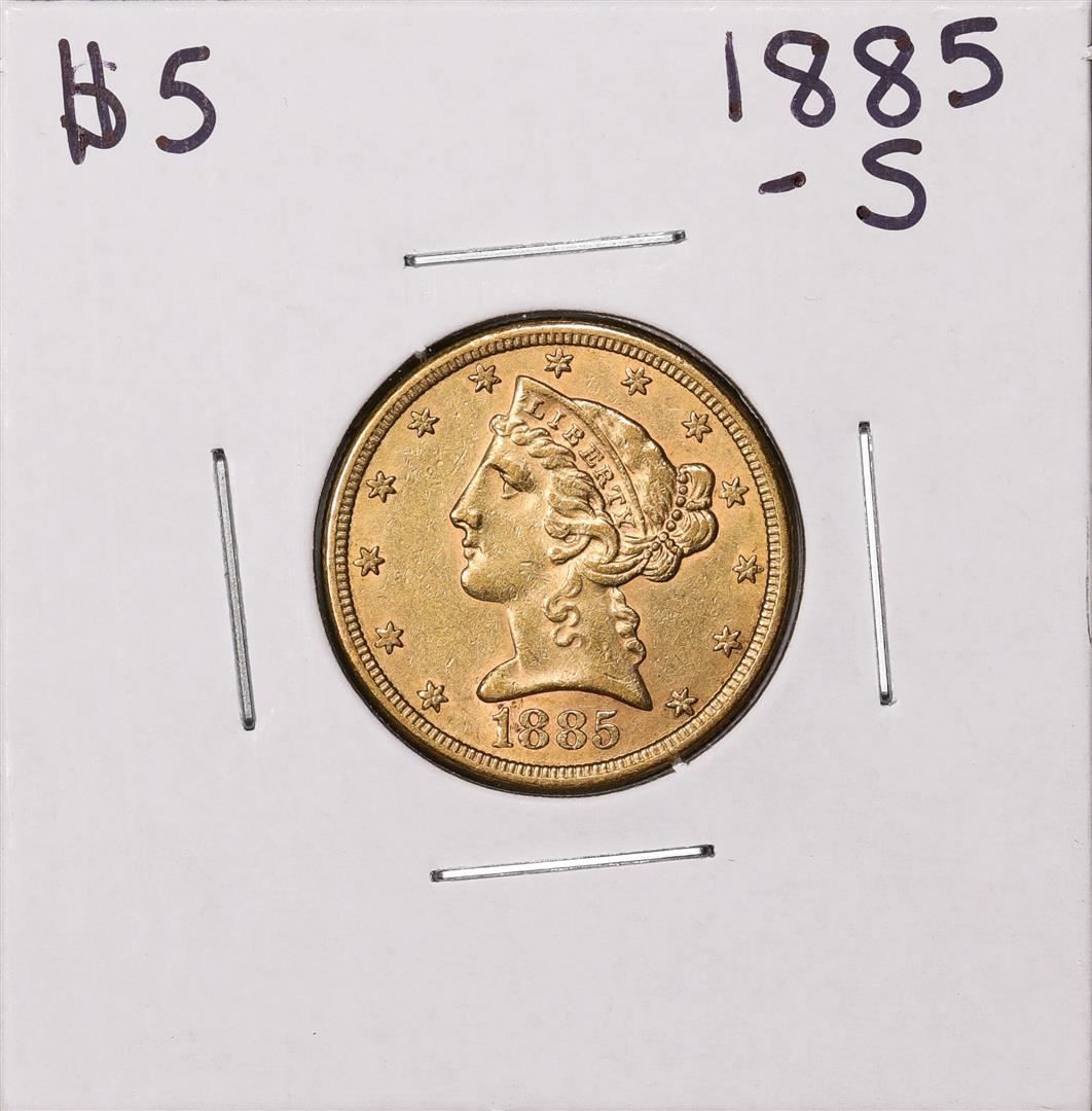One 1885-S $5 Liberty Head Half Eagle Gold Coin.