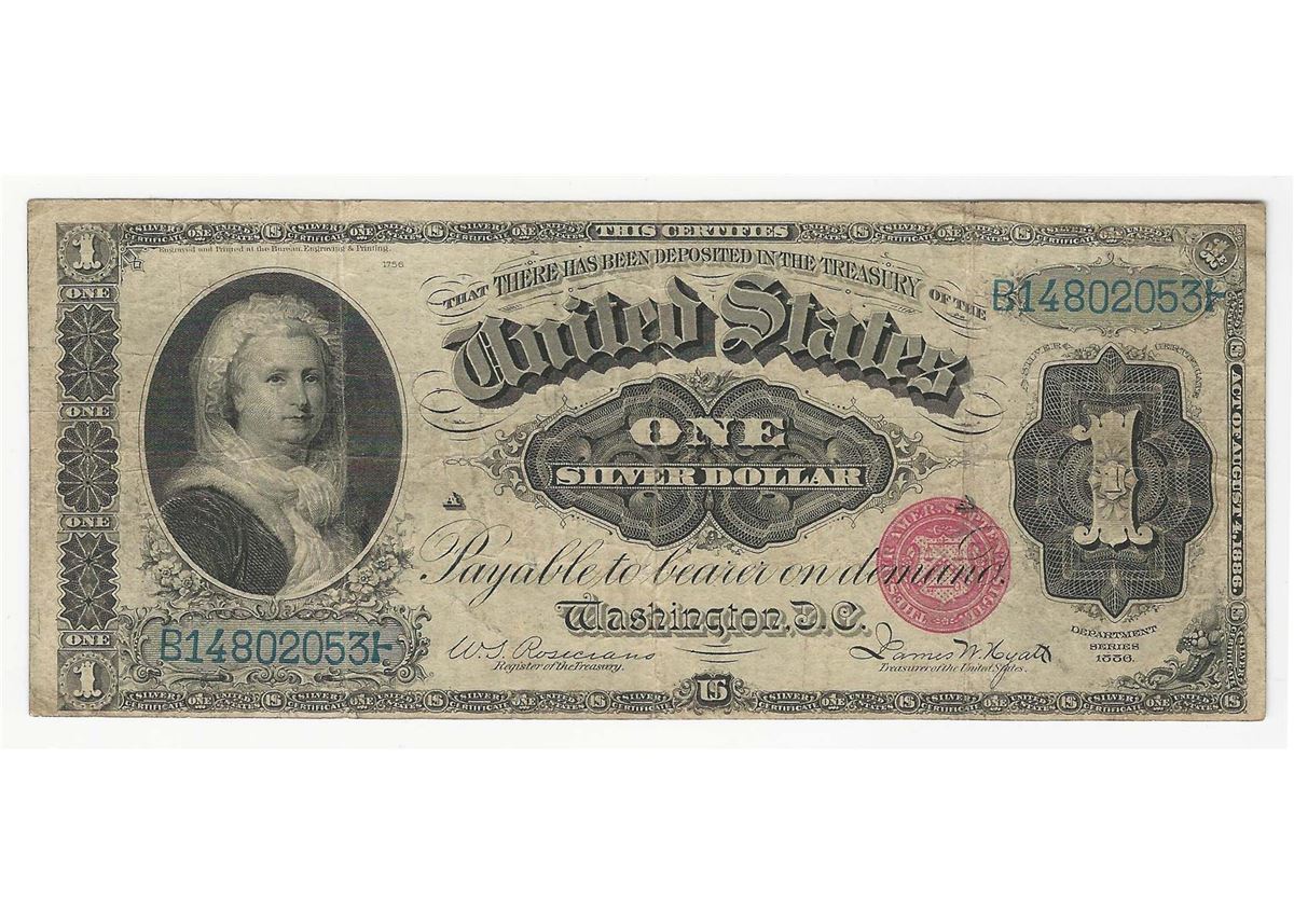 One 1886 $1 Martha Washington Large Silver Certificate Note.