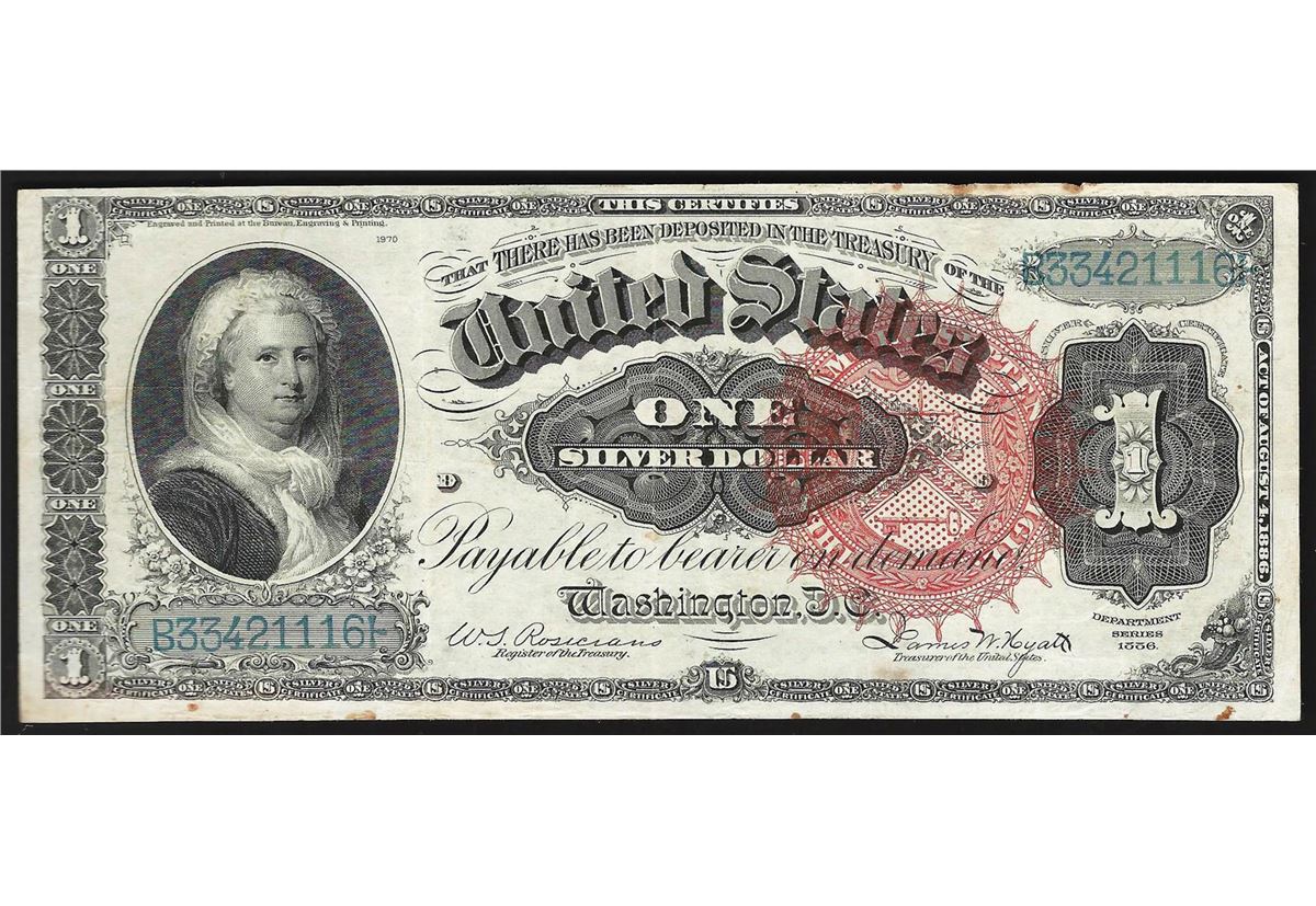 One 1886 $1 Martha Washington Large Silver Certificate Note.