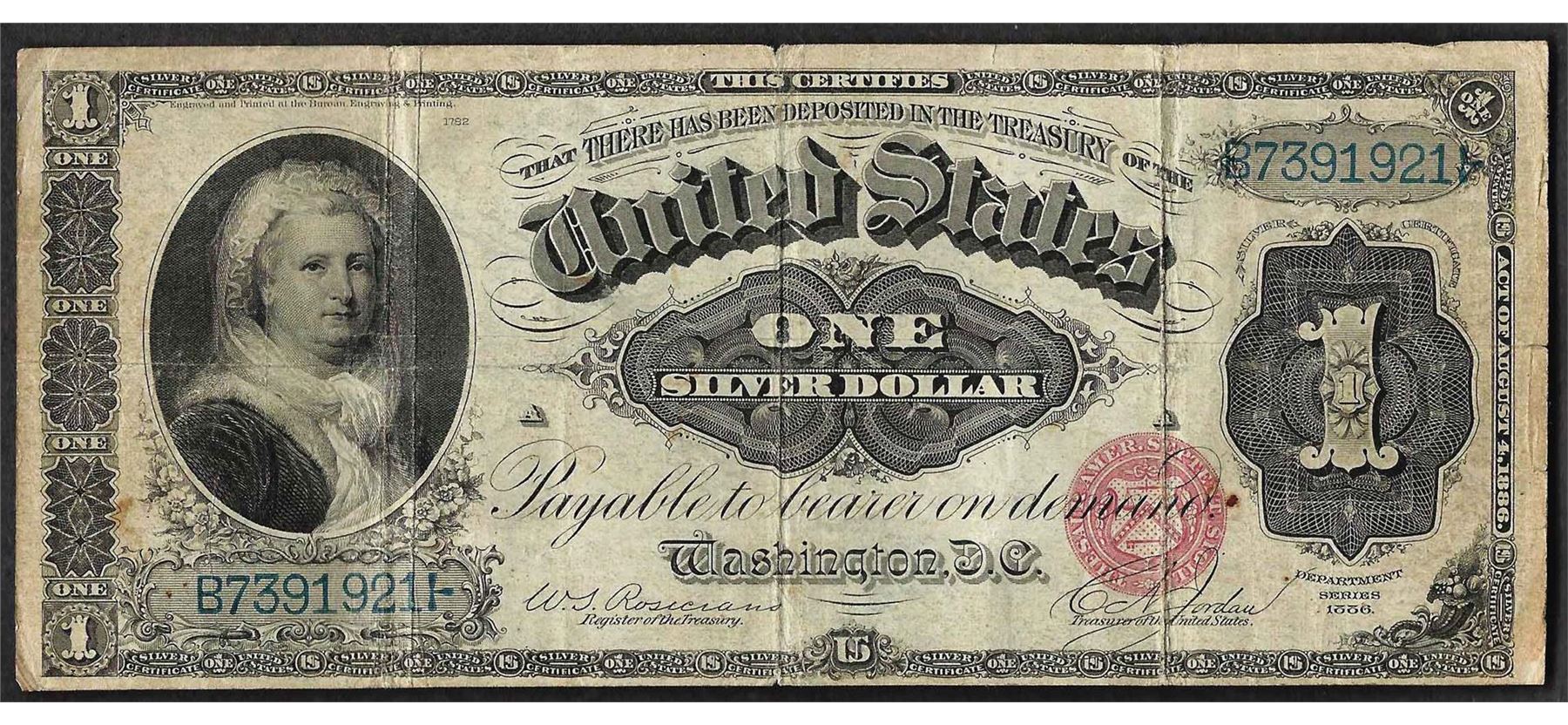 One 1886 $1 Martha Washington Silver Certificate Note Fr.215.