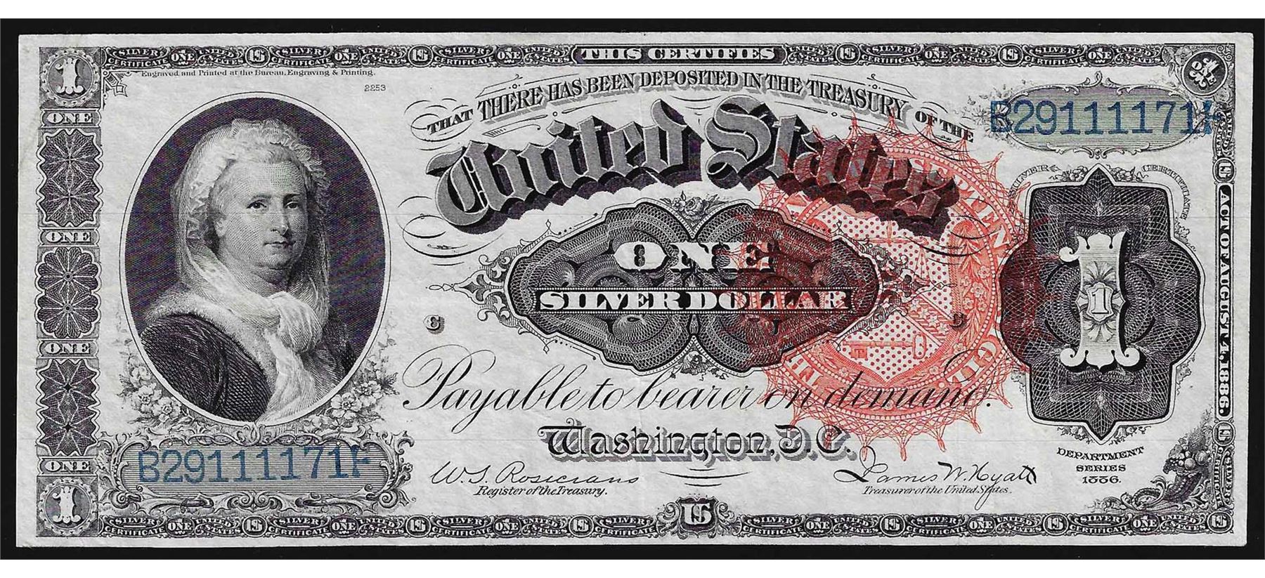 One 1886 $1 Martha Washington Silver Certificate Note.