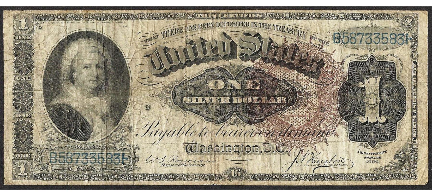 One 1886 $1 Martha Washington Silver Certificate Note.