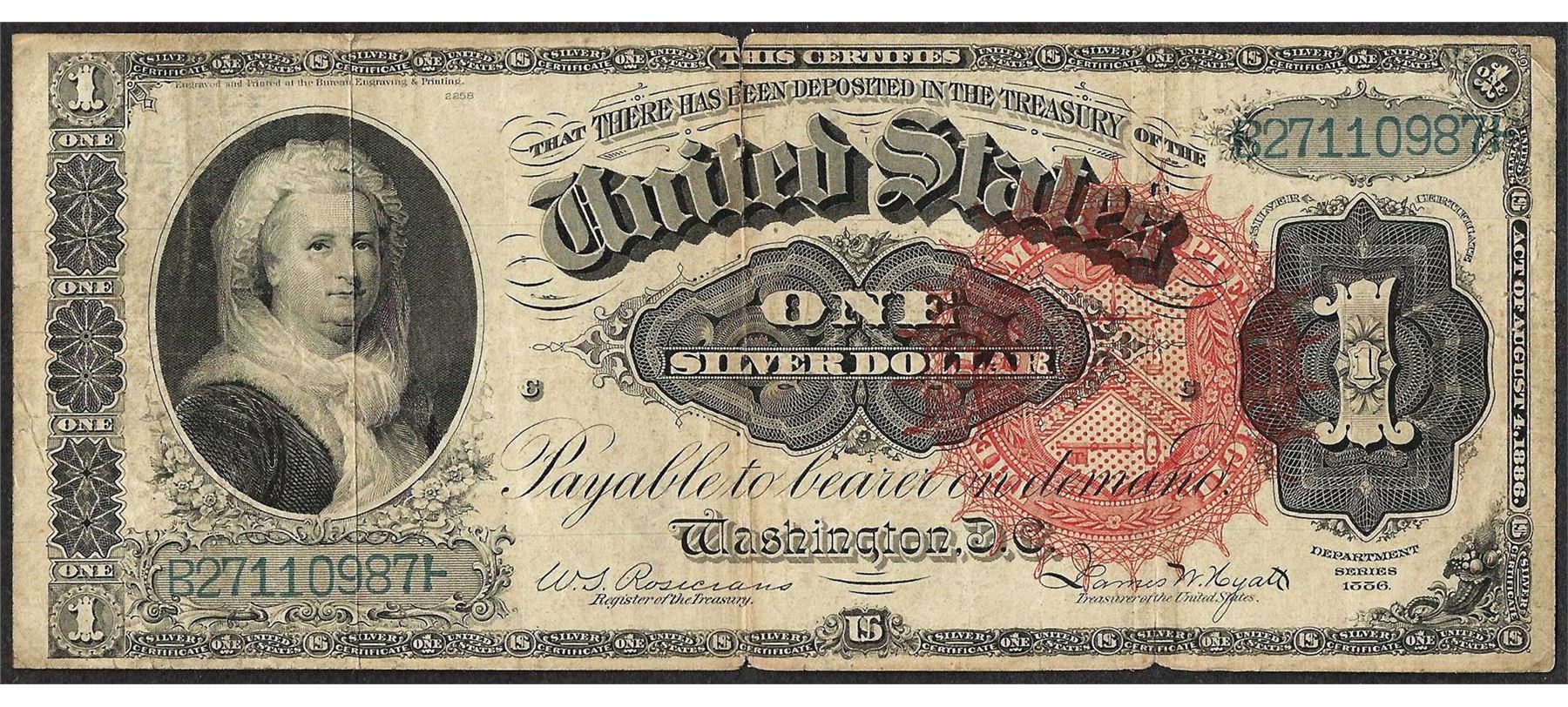 One 1886 $1 Martha Washington Silver Certificate Note.