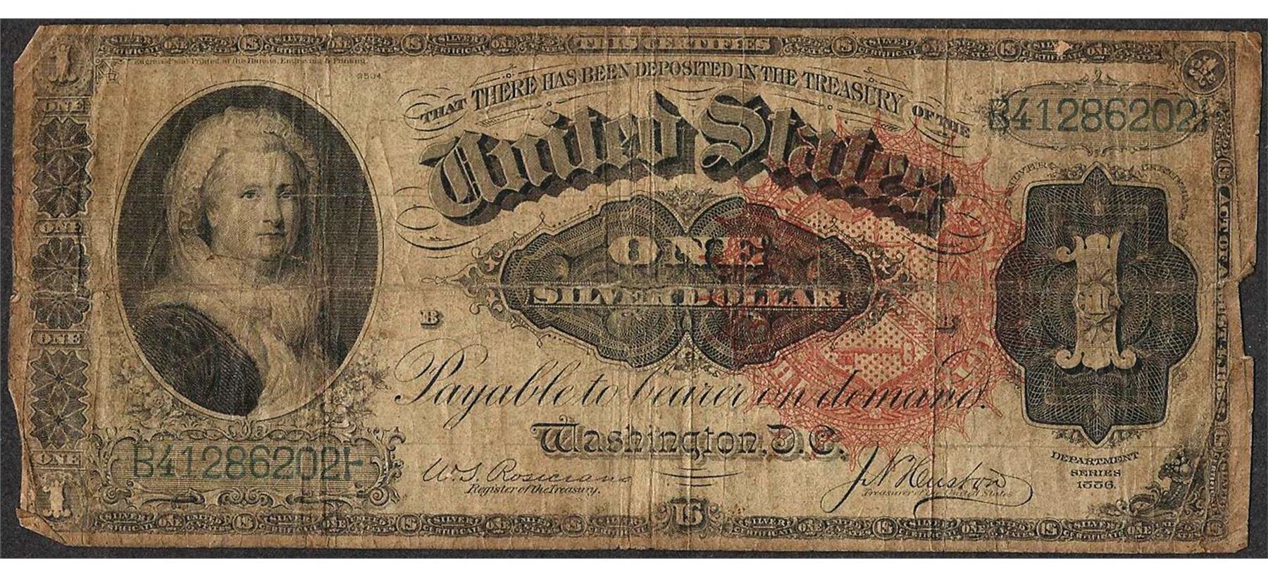 One 1886 $1 Martha Washington Silver Certificate Note.