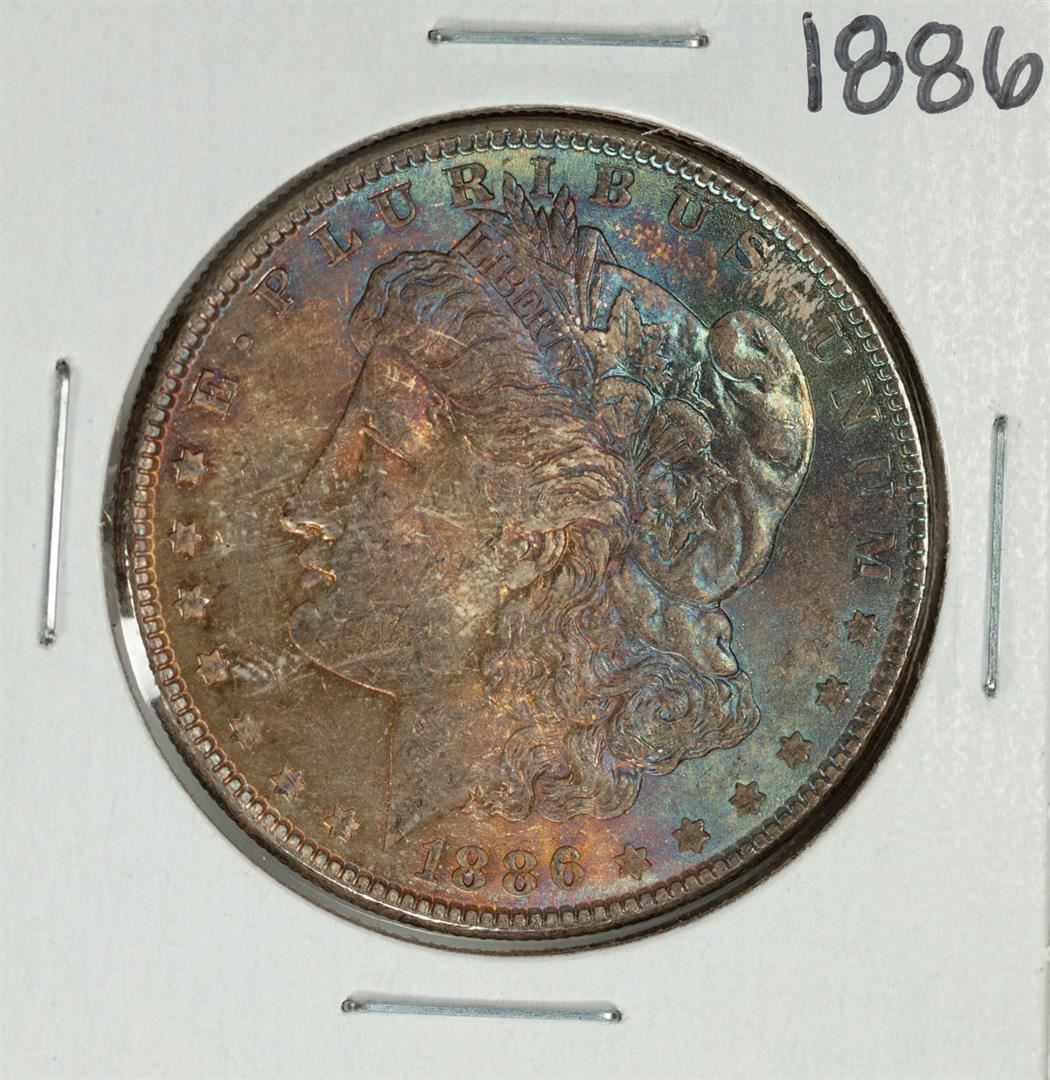 One 1886 $1 Morgan Silver Dollar Coin Amazing Toning.