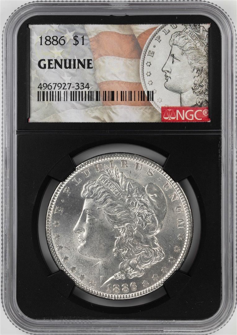 One 1886 $1 Morgan Silver Dollar Coin NGC Genuine. NGC Certified.