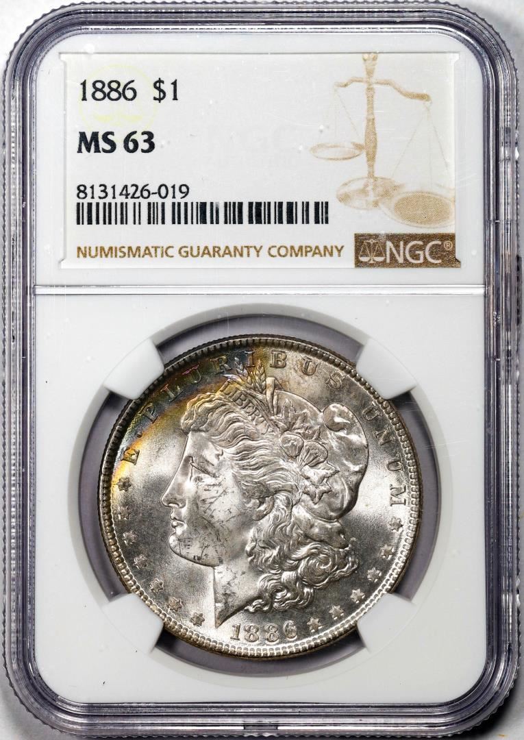 One 1886 $1 Morgan Silver Dollar Coin NGC MS63 Nice Toning. NGC Certified.