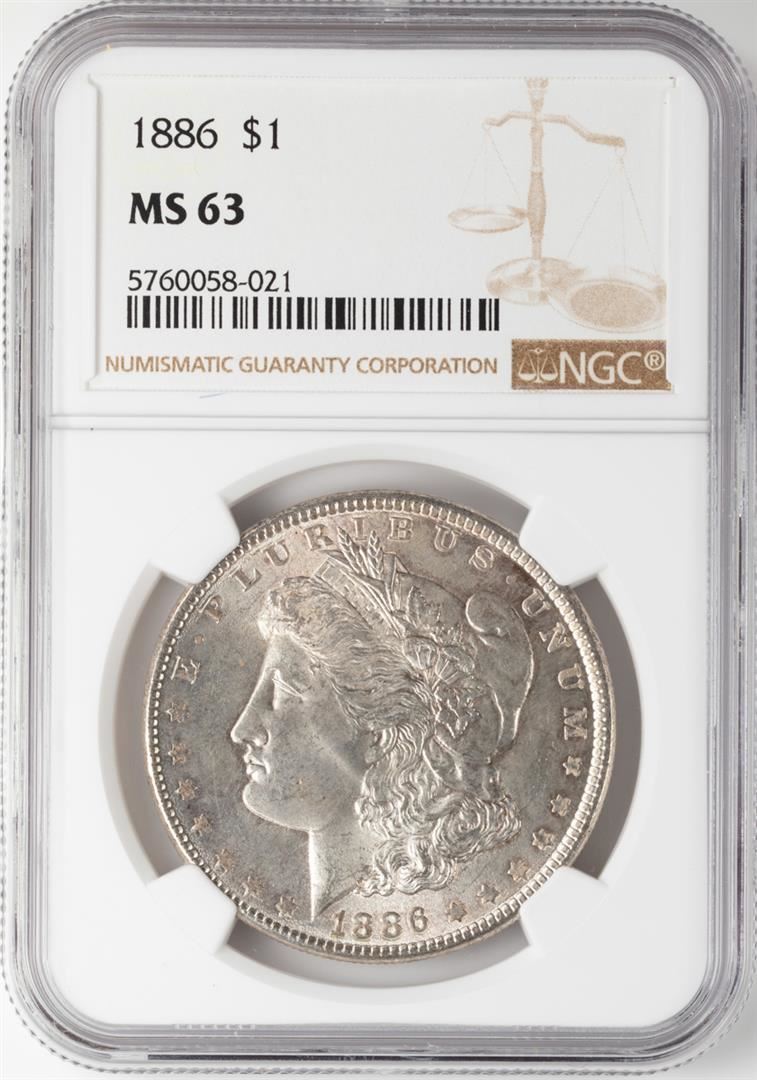 One 1886 $1 Morgan Silver Dollar Coin NGC MS63. NGC Certified.