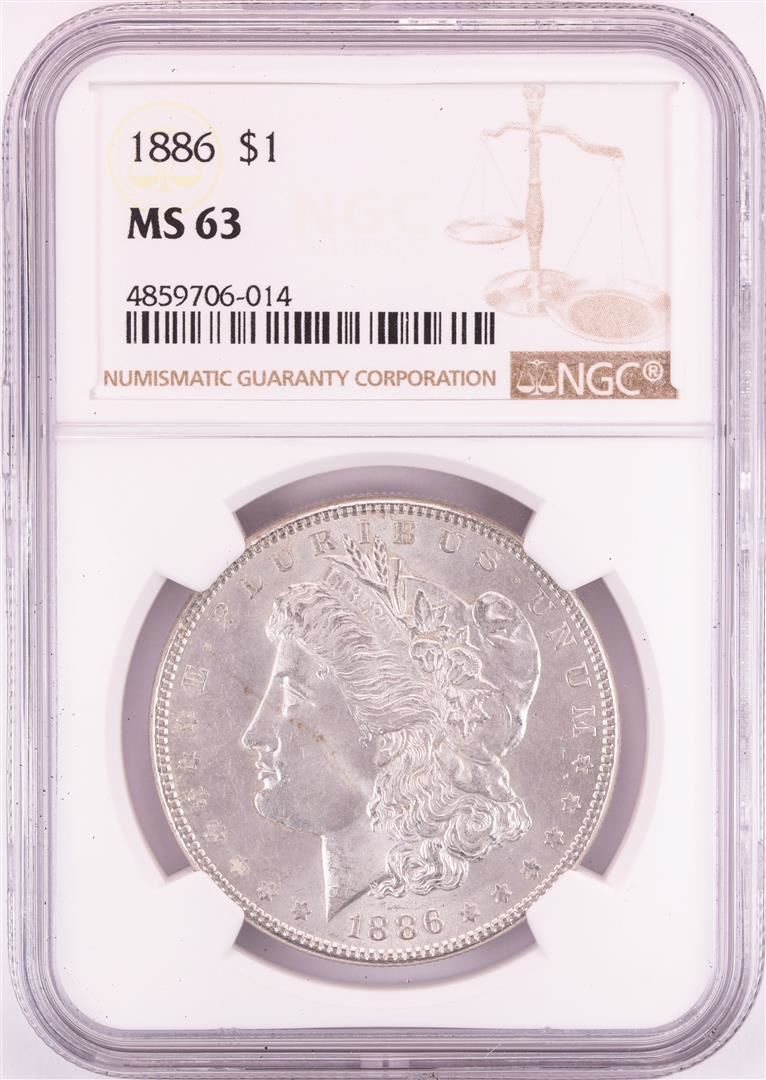 One 1886 $1 Morgan Silver Dollar Coin NGC MS63. NGC Certified.