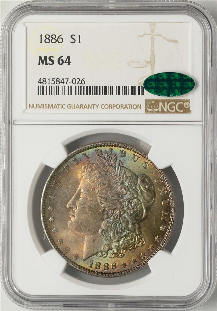 1886 $1 Morgan Silver Dollar Coin NGC MS64 CAC Amazing Toning