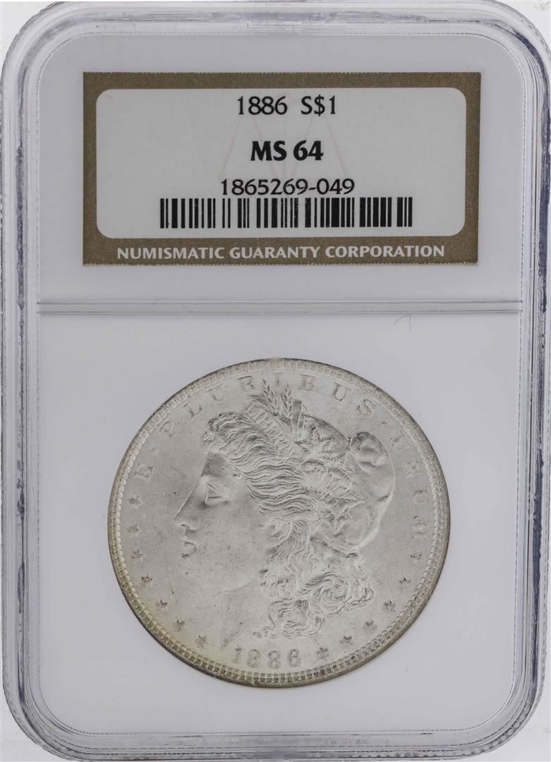 One 1886 $1 Morgan Silver Dollar Coin NGC MS64. NGC Certified.