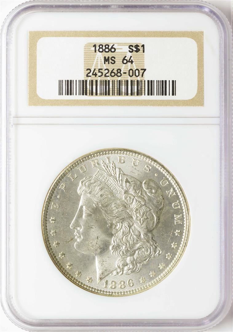 One 1886 $1 Morgan Silver Dollar Coin NGC MS64. NGC Certified.